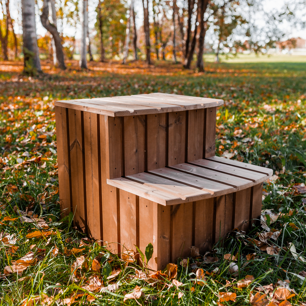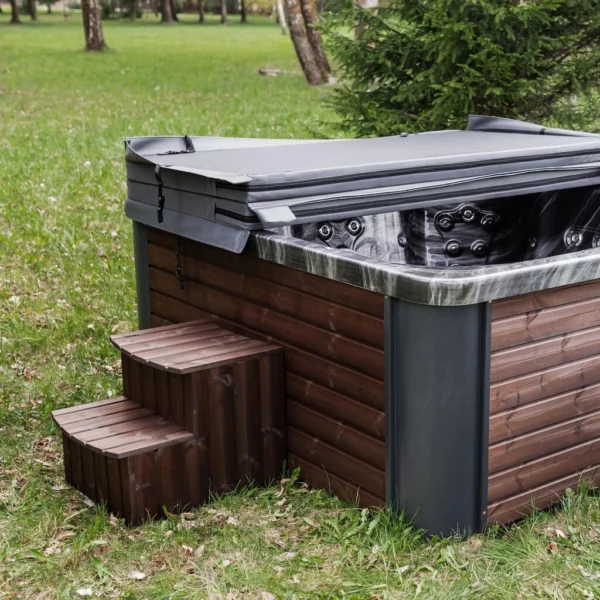 Jakuzinin dış kaplamasıyla birebir uyumlu, kaymaz yüzeyli ve geniş basamaklı tasarım. Hem şık bir bütünlük sunar hem de güvenli bir giriş-çıkış imkanı tanır.