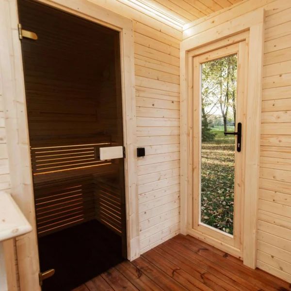 6-8 kişilik olan Zen sauna, hem şıklığı hem de fonksiyonelliği ile evinizde keyifli bir rahatlama alanı yaratır.